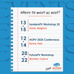 SuPerTandem will take part in several key events in May 2025, where researchers, innovators, and industry leaders will come together to shape the future of photovoltaics: tandemPV Workshop 25 13–15 May 2025 | Genk, BelgiumThis international workshop will spo